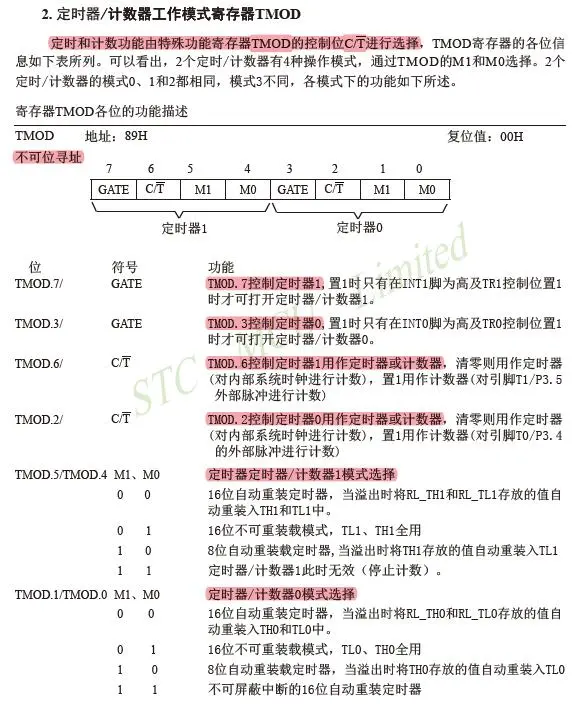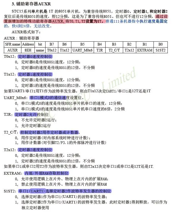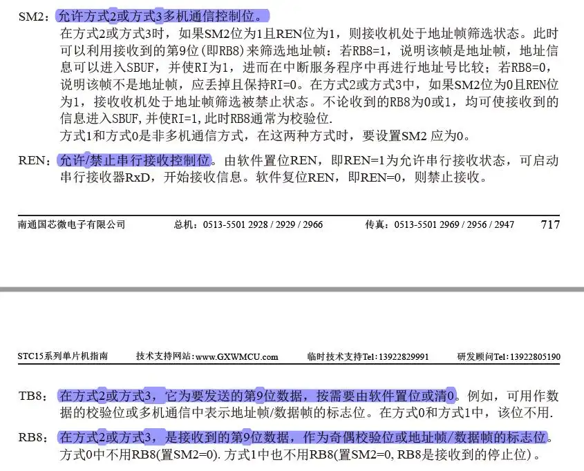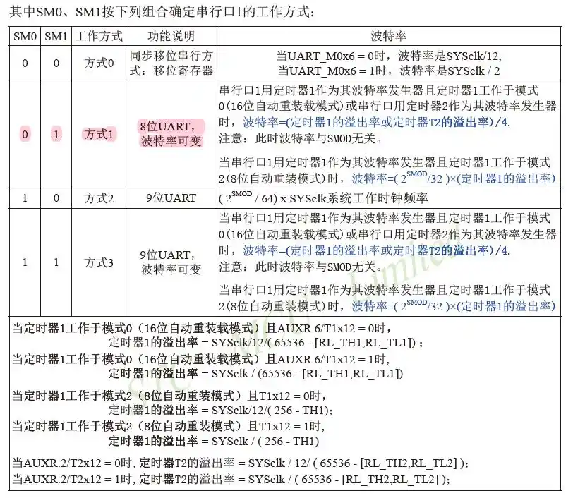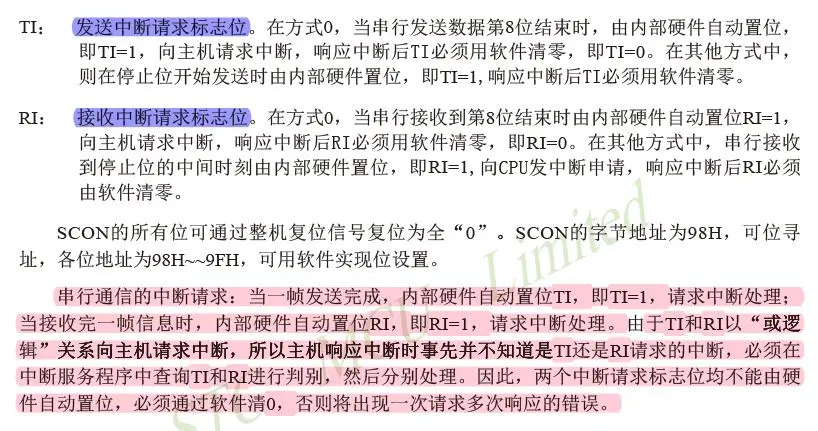 串口2只能使用定时器2作为波特率发生器,不能够选择其他定时器作为其波特率发生器;而串口1默认选择定时器2作为其波特率发生器,也可以选择定时器1作为其波特率发生器;串口3默认选择定时器2作为其波特率发生器,也可以选择定时器3作为其波特率发生器;串口4默认选择定时器2作为其波特率发生器,也可以选择定时器4作为其波特率发生器两个中断请求标志位必须软件清0不能硬件清0