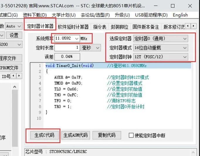 5. 启动定时器(TCON寄存器里的) 也可以在ISP里面直接生成: