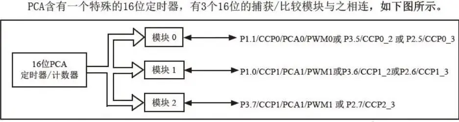 PCA模块是程序可编程计数器/定时器模块,用于在单片机中生成定时器/计数器信号。