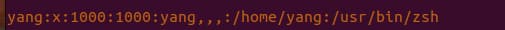 有几个由冒号 (:) 分隔的数据字段,从左到右分别是 用户名,x字符表示加密的密码,UID (1000):每个用户都必须有自己唯一的用户 ID,GID (1000):组 ID 由以下字段表示。GID 保存在文件 /etc/group 中,详细信息(yang,,,),主目录(/home/yang),/usr/bin/zsh 是shell或命令的默认绝对路径