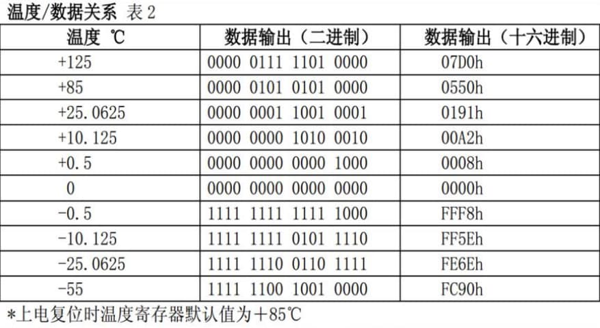 如果测得的温度大于 0,这 5 位为‘ 0’,只要将 测到的数值乘以 0.0625(默认精度是 12 位)即可 得到实际温度;如果温度小于 0,<这 5 位为‘ 1’, 测到的数值需要取反加 1 再乘以 0.0625 即可 得到实际温度。