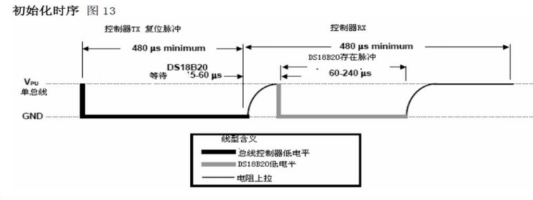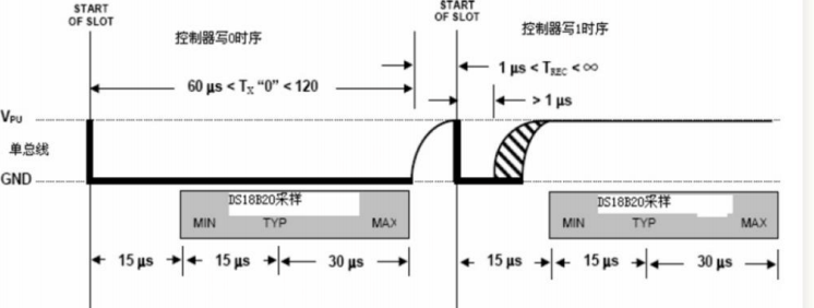 由于 DS18B20是单总线器件,所有的单总线器件都要求采用严格的 信号时序,以保证 数据的完整性。DS18B20 时序包括如下几种:初始化时序、写(0 和 1)时序、 读(0和 1)时序(DS18B20 发送所有的命令和数据都是字节的 低位在前 )