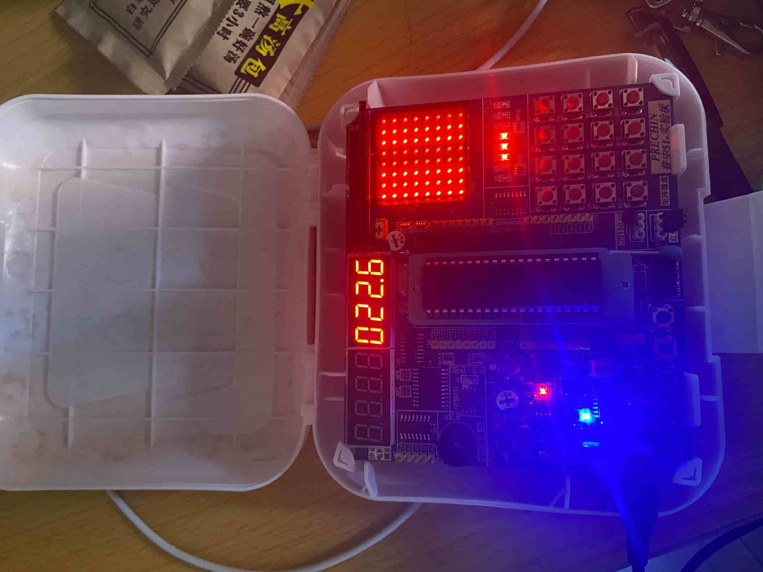 实验现象:下载程序后,插上DS18B20温度传感器,数码管显示检测的温度值