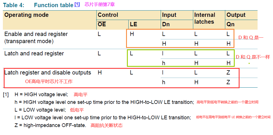 - LE:latch-enable 锁存使能 当LE是高电平,Q(output)与D(data)保持一致;当LE是低电平,Q保持住原先状态,不受D的影响