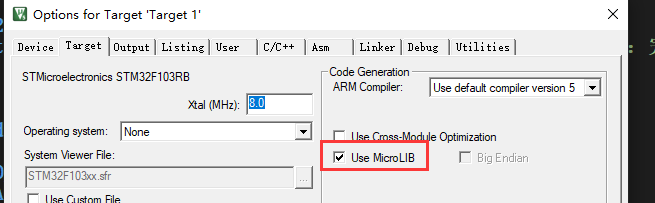 魔法棒–ARM Compiler– 选择《Use default compiler version 5》(选6可能报错!!!),如果用到C库可把下面的《Use MicroLIB》也勾了- 如果编译还错误,左侧展开