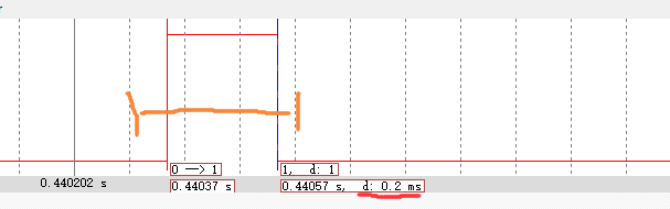 RST(重置),然后点击旁边的run(运行),它会运行到你断点处,此时再点击第二个括号,直到出现波形图即可,勾《Signal Info》然后把鼠标放在某一处会出现对应信息(时间,Hz等),勾《Cursor》,这个可以测某处到另一处之间的时间(看d:),先点开始处在移动蓝线即可