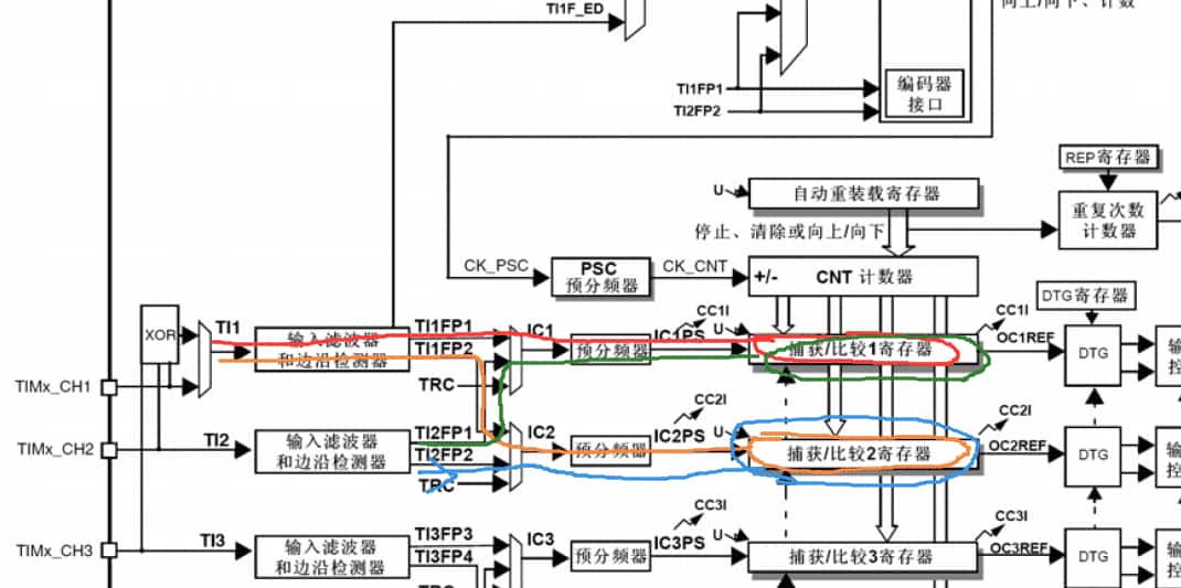 - 根据TIM的四个捕获比较通道位置: