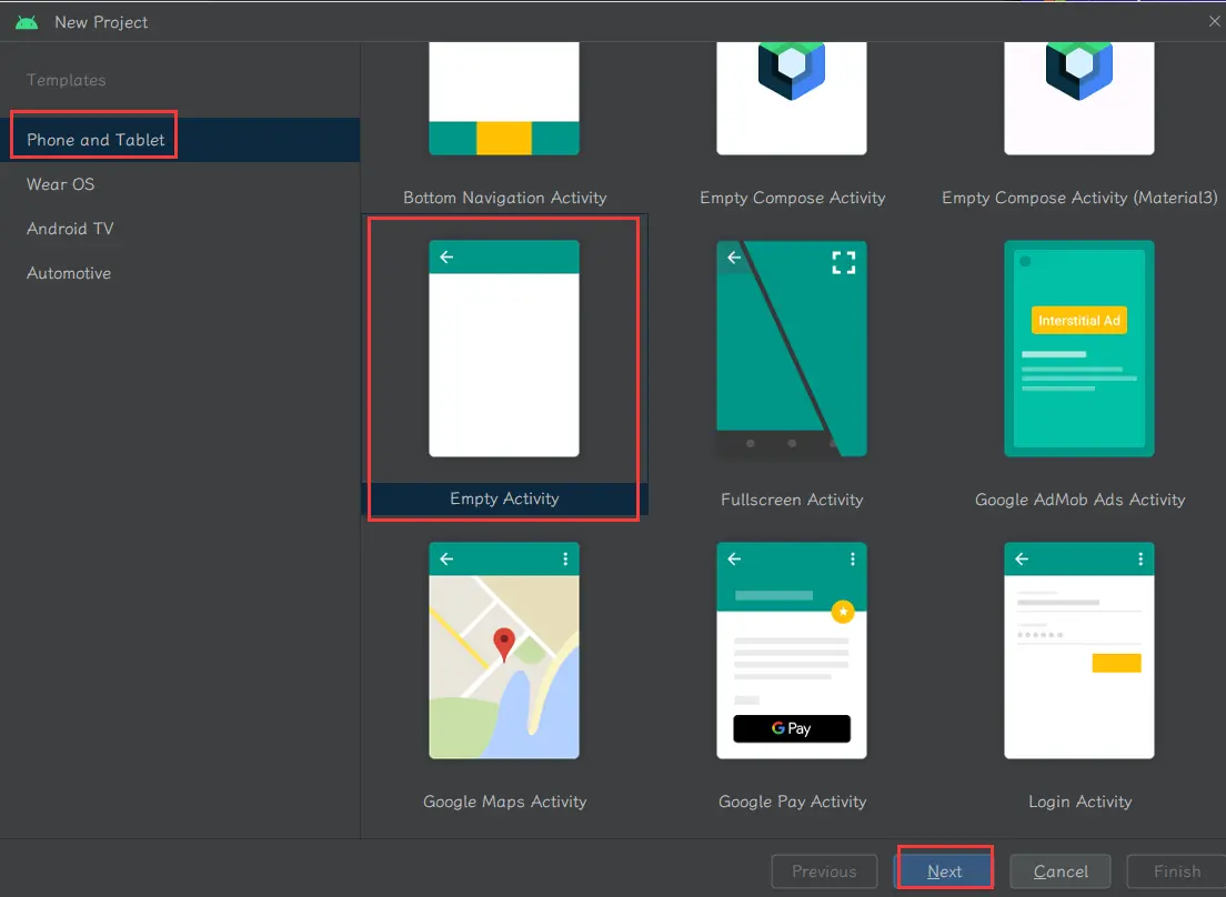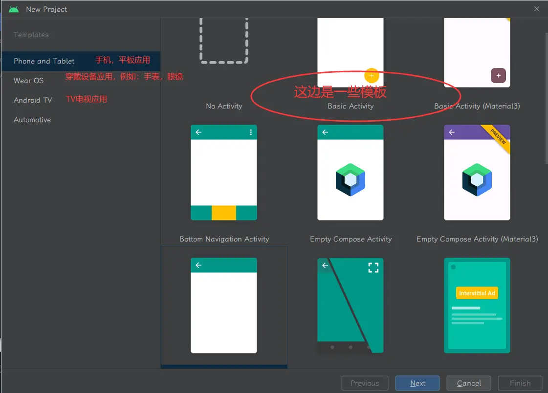 • 点击 【New Project】 新建一个项目,选择【Empty Activity】空模板