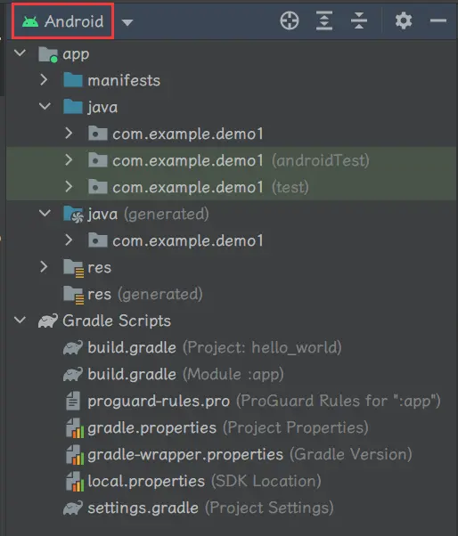在Android Studio里面,采用【Android】视图,查看到的项目目录结构就是下面的样子: