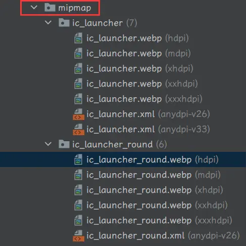 主要用于存放一些App应用的启动图标,里面有默认的启动图标文件,如下所示: