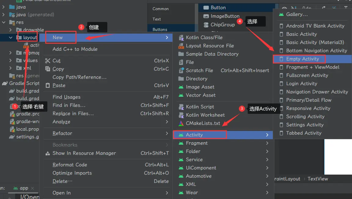 • activity_button.xml 里设置按钮的背景为drawable的XML文件。