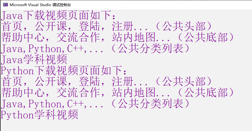 cout << "首页,公开课,登陆,注册...(公共头部)" << endl;