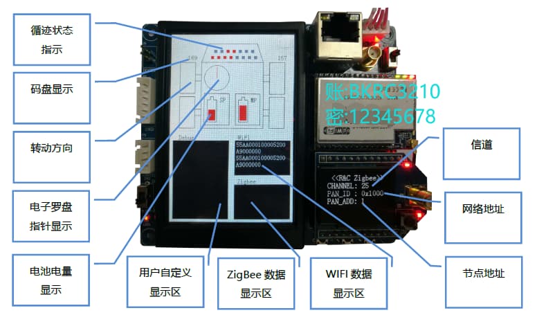 | 红外报警台 | 同上 | PAN_ADD(节点地址ID号):9 | ZigBee通信 红外通信 回传信息:随机坐标 |