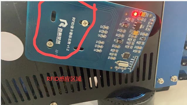 - 需要注意寻卡寻迹有时候会寻到卡蜂鸣器也响但是没读取成功【即debug屏幕没显示读取到的数据】,这个属于假读取,原因是因为你读取到卡时RFID卡已经错过底部感应区,即跟图一样所以此时读是读不到东西【解决方法是减慢寻卡寻迹的速度或者寻到卡后后退一点距离】