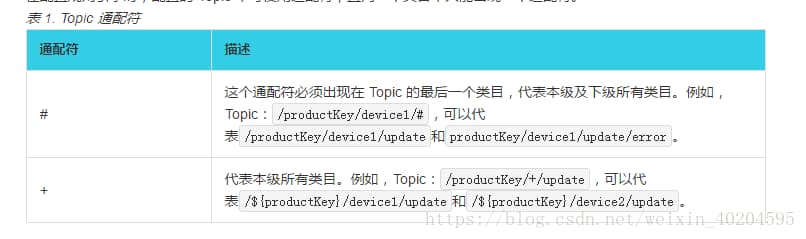 Topic类:同一产品下不同设备的Topic集合,用 ${productkey}和${deviceName}通配一个唯一的设备,一个Topic类对一个ProductKey下所有设备通用