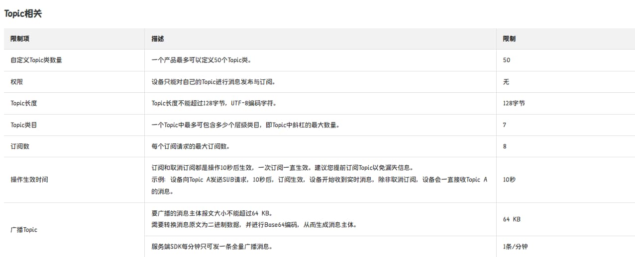 - 产品的Topic类不用于通信,只用来定义Topic,真正用来消息通信的是Topic,Topic和Topic类的格式一致,区别在于,Topic类中的变量${deviceName},