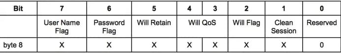 Password Flag设置为 0 则密码不必出现在载荷中;设置为 1 则必须出现在载荷中;如果 User Name Flag设置为 0 ,那么Password Flag必须设置为 0
