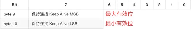 秒为单位的时间间隔。用2字节表示,它指的是客户端从发送完成一个控制包到开始发送下一个的最大时间间隔 - 客户端有责任
