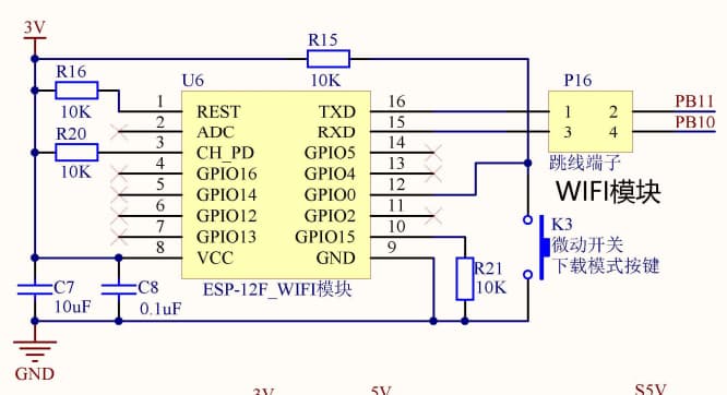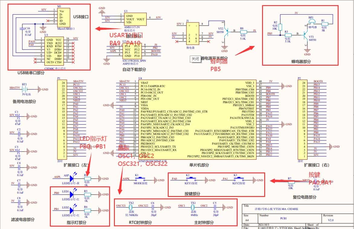 • 核心板设置完,则开始设置单片机上的其他端口,下面是单片机的原理图,根据网络标号进行设置对应的端口即可