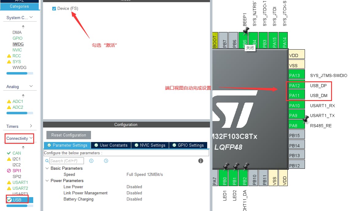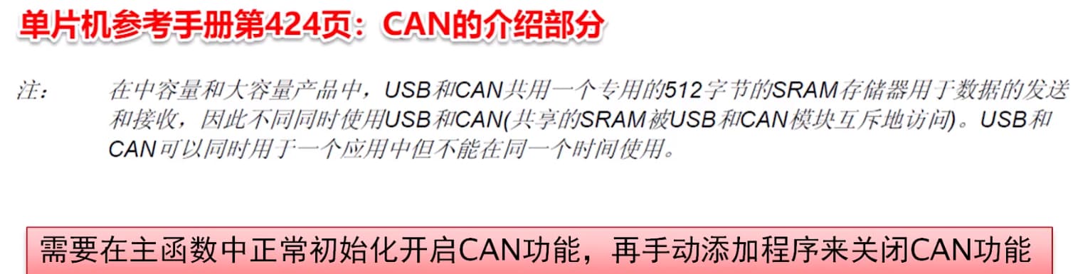 注意:STM32F103 单片机有个特殊设计:CAN功能与USB功能共用一组RAM空间两个功能不能同时使用