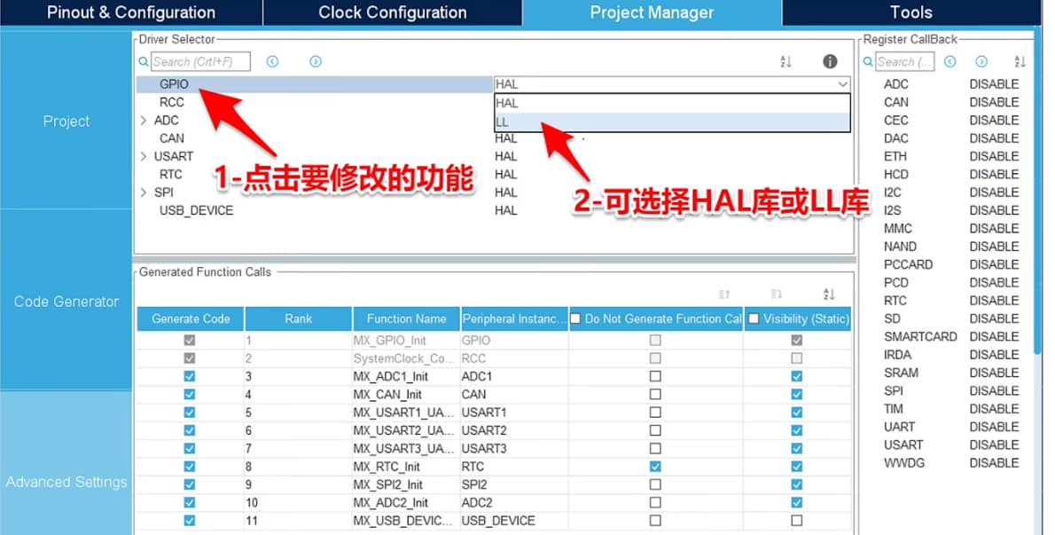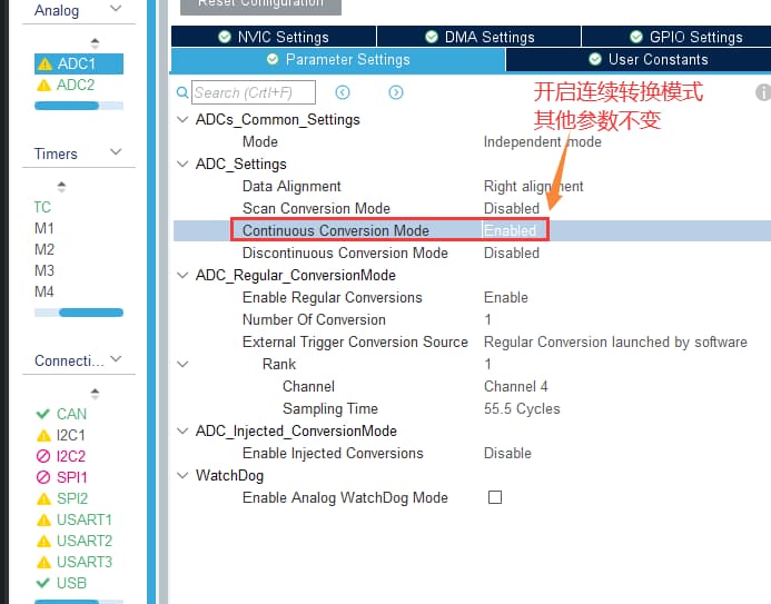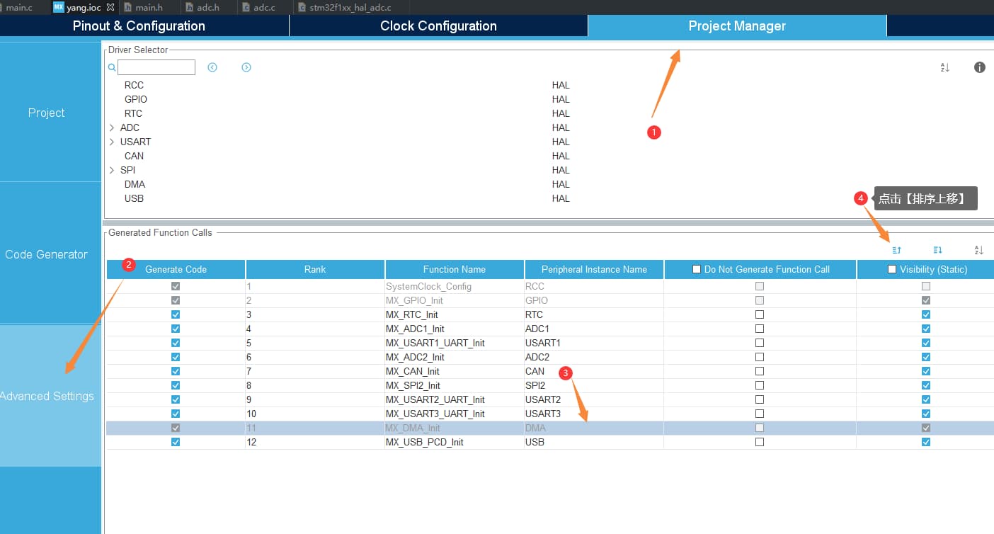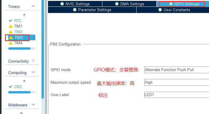 注意:在main.c里修改了配置,视图里是不会更新的!!!所以推荐在视图里改然后重新生成代码或者新建函数把生成的代码复制进去修改再调用新建的函数(这种方法比较麻烦)