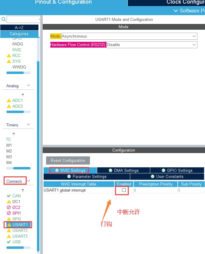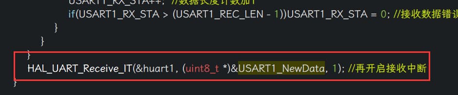 HAL_UART_Receive_IT(&huart1,(uint8_t*)&USART1_NewData,1);//开启串口1接收中断