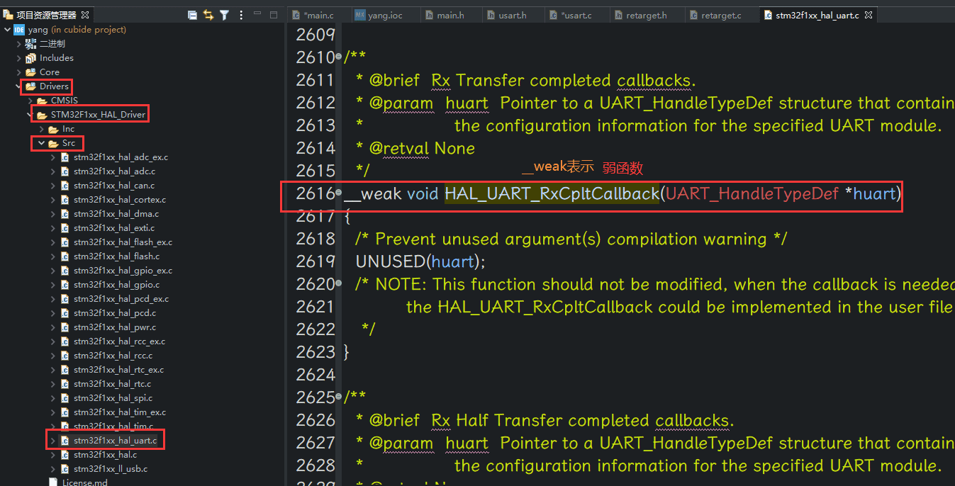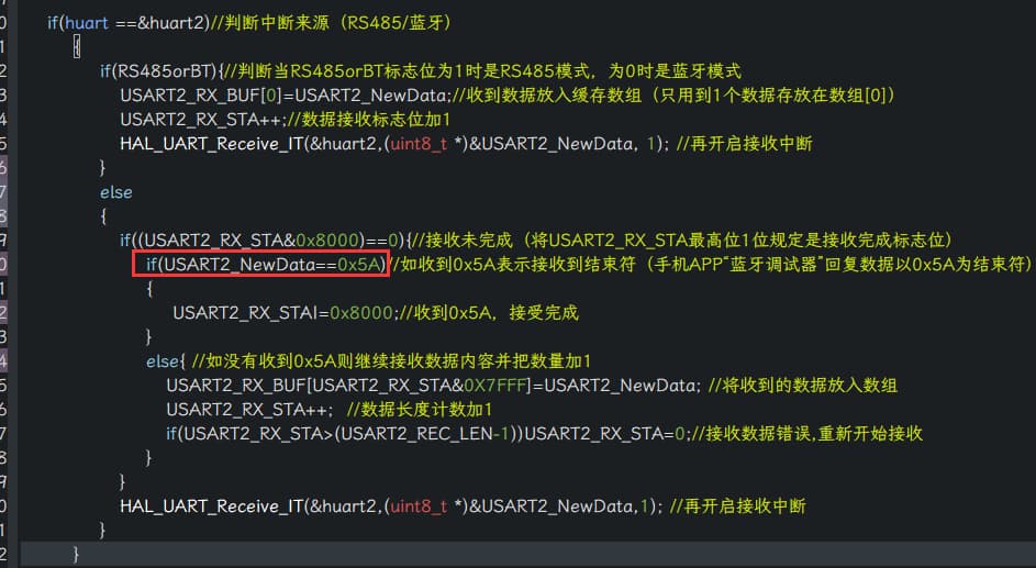 if(htim ==&htim2)//判断是否是定时器2中断(定时器到时表示一组字符串接收结束)