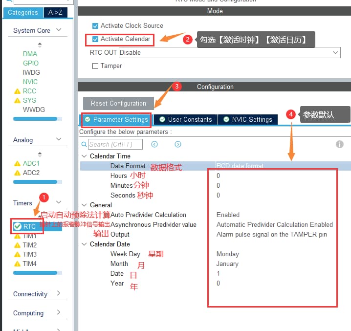 注:晶振引脚已经在 RTC功能设置里设置了(见上面)