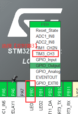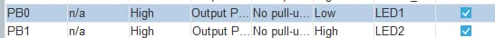 • 现在以开发板上的 LED1,LED2为例设置引脚,首先打开原理图,通过原理图可以知道 LED1 连接在 PB0 ,LED2 连接在 PB1 ,并且它们另一端都是接地当 PB0 或者 PB1 为输出模式并且高电平时 LED1 或者 LED2 点亮