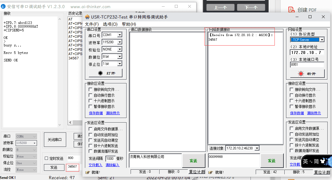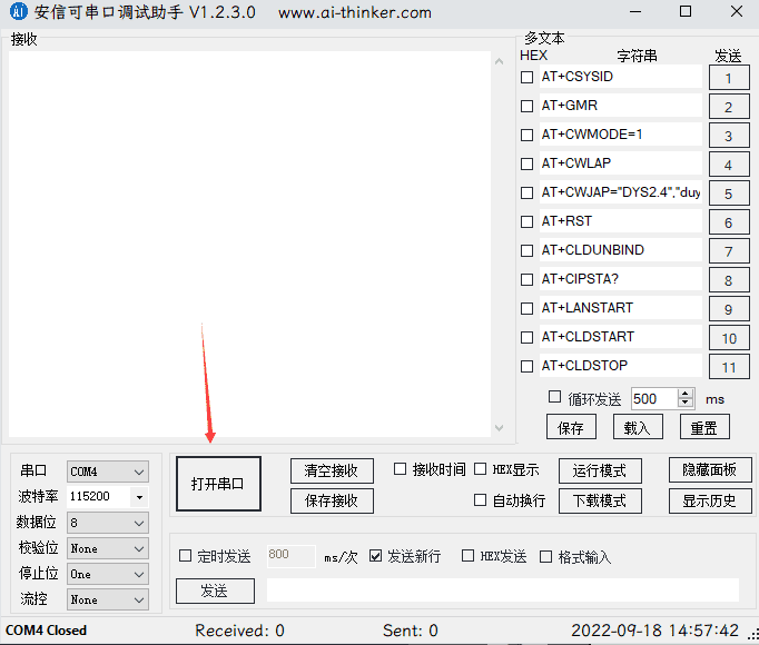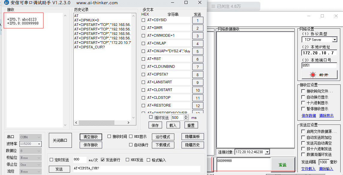 把程序烧进单片机,然后打开超级终端软件,波特率115200、8、无、1、无 ,重启开发板观察WIFI模块发来的调试信息(心跳成功表示与云平台连接成功)(请确保WIFI模块曾经连接过热点,这样重启才会自动连接)