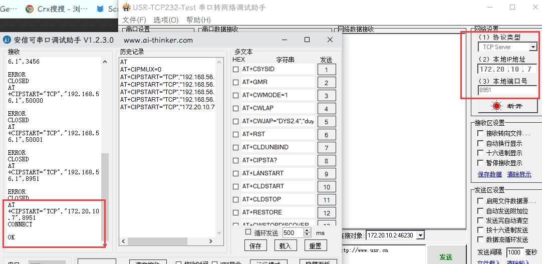 while(esp8266_Connect_IOTServer());//AT指令连接TCP连接云服务器(IP和端口参数在esp8266.h文件内修改设置)