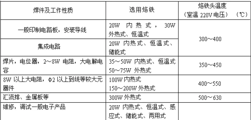 选择烙铁的功率和类型,一般是根据焊件大小与性质而定(建议 30W和60W )