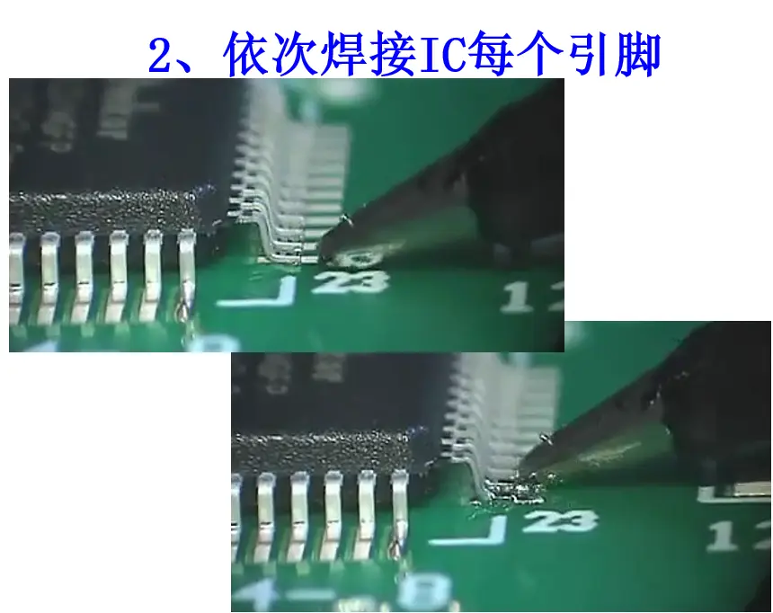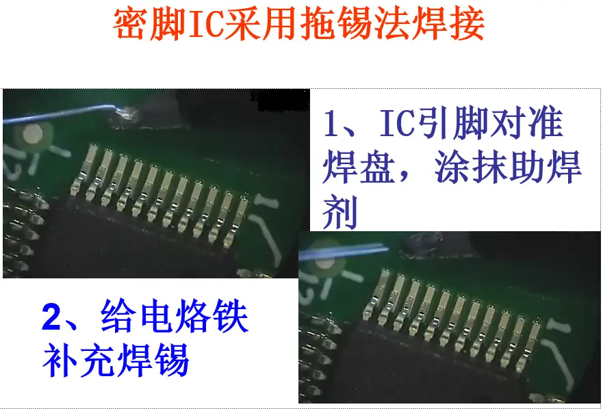 - 密脚IC采用拖锡法焊接