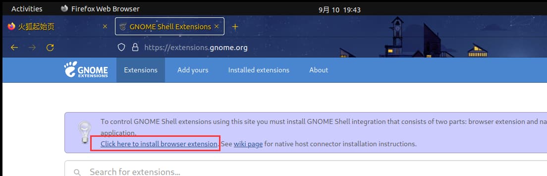 然后去火狐浏览器输入网站:https://extensions.gnome.org