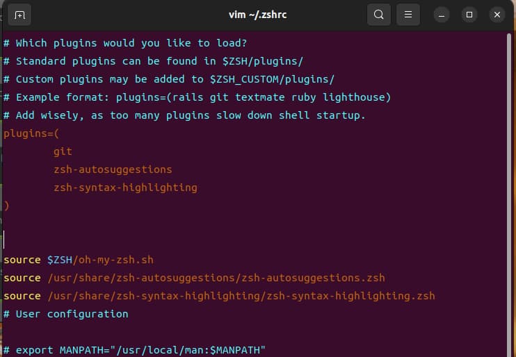plugins=(git zsh-autosuggestions zsh-syntax-highlighting)