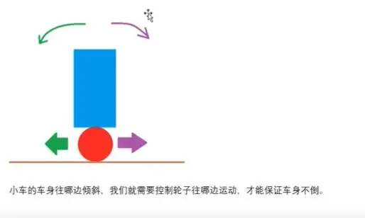 极性正确:倾斜小车,车轮转动方向和倾斜方向一致;极性错误:倾斜小车,车轮转动方向和倾斜方向相反