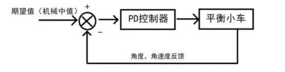 中值就会倾倒,所以这里直接省略掉了积分控制。下图是一个PD直立环的控制回路: