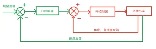 平衡小车调速使用的是正反馈,比如我们小车正在以一定速度运动,此时需要小车停下,正常逻辑是减小轮子速度。这是负反馈。但是放到平衡小车上,如果此时减小轮子速度,小车会因为惯性向前倾倒。反而需要加速轮子追上车身,这时倾角减小,直立环作用小车反而会停下。所以需要使用 正反馈