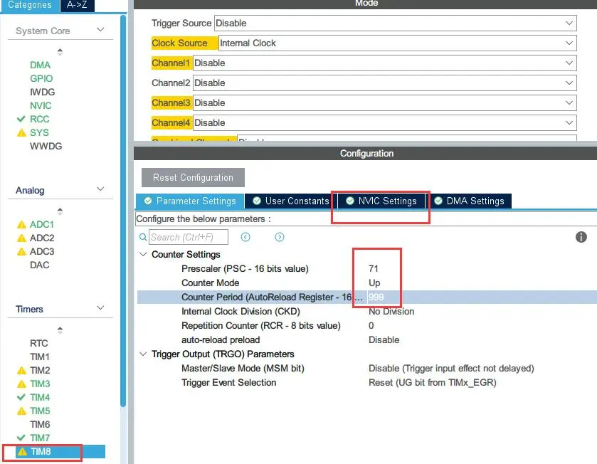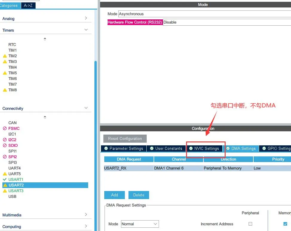 ADC打开DMA中断的话导致卡死,可能是因为上面修改了优先级问题,所以我把DMA中断关闭了