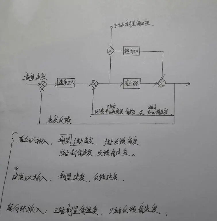 我们想要直立的同时可以进行运动,所以需要加速度环,下面是串级PID,速度环没用到D是因为我们需要的是一个缓慢的速度,如果加了D当达到我们设定速度后它可能需要去消除震荡就可能会导致轮子抖动,这个是不利的效果