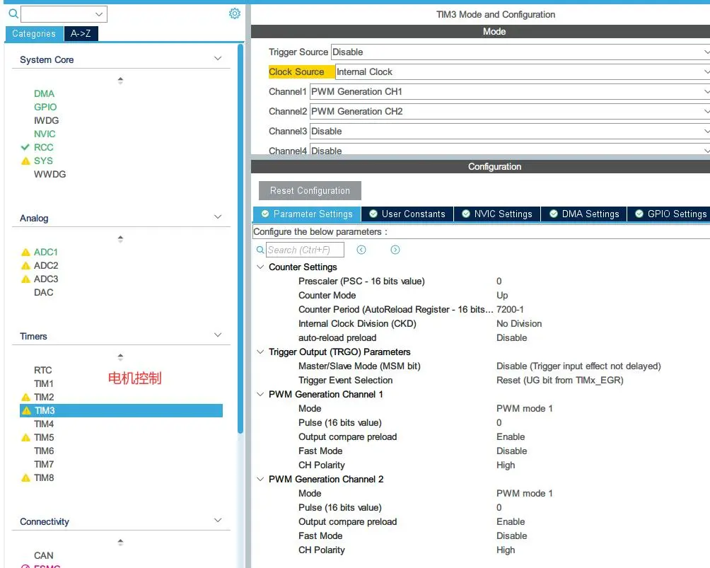 第一次计算:期待值是100,目标值当前为0,那误差就是100,那PWM输出就是