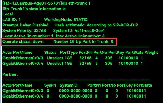 两个设备之间进行链路聚合时,设置了一个设备的话查看配置是 down 状态