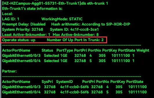 [HZ-HZCampus-Agg01-S5731-Eth-Trunk1]mode lacp-static