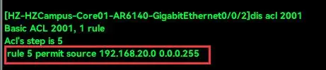 [HZ-HZCampus-Core01-AR6140-GigabitEthernet0/0/0.2]ip add 192.168.20.254 24