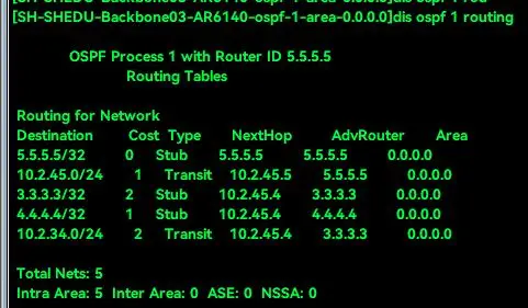 [SH-SHEDU-Backbone01-AR6140]ospf 1 router-id 3.3.3.3 # 启动ospf进程号为1并手动设置router-id(id看表Loopback0端口id地址)