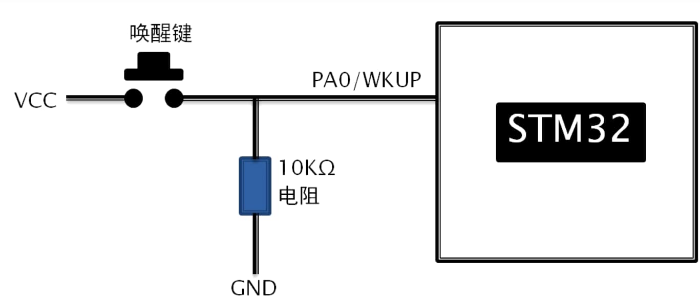因为唤醒键连接的是 VCC 所以平时没按下时如果不接下拉电阻则就分辨不出来是高还是低,接下拉电阻后电路平时就有一个弱弱的低电平状态;当按键按下电流流过就变成高电平