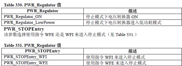 • PWR_EnterSTOPMode(手册14.2.6)//进入停机(STOP)模式