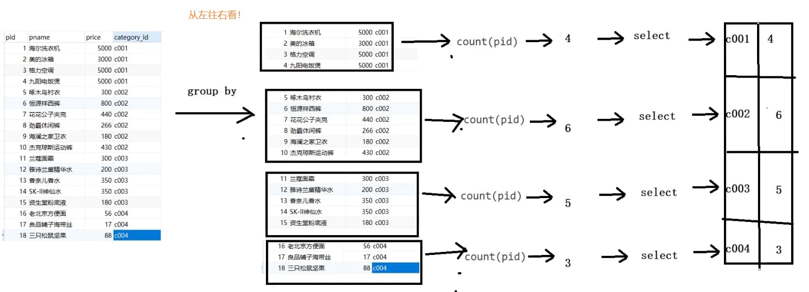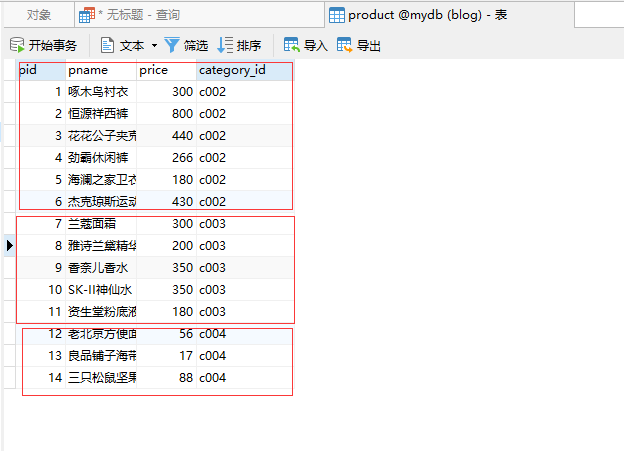 比如看回之前的表数据,可以发现其实可以按照最后一个字段 category_id 进行分组,可以分为3组