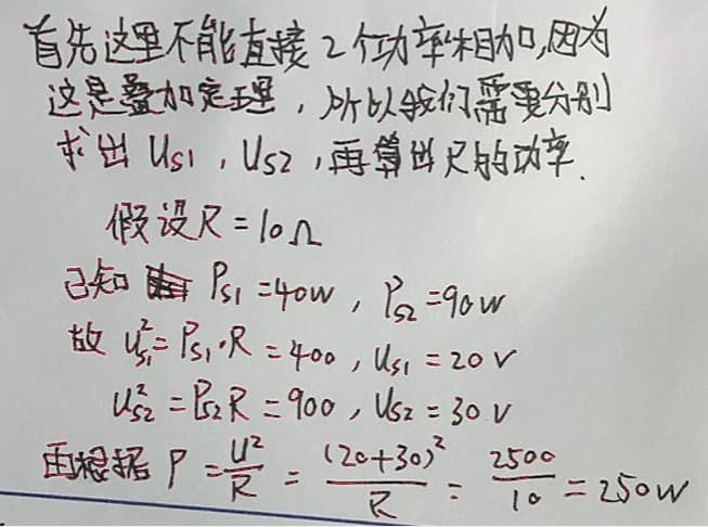 叠加定理只适用于求线性电路的电压,电流和功率(✘)(叠加原理只适应求解线性电路的电压、电流,对功率不适用)