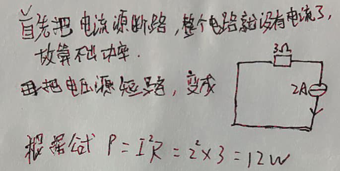 8W(恒流源串联的东西都当不存在处理,恒流源相当于理想电流源,所以与它串联的电压源可以去掉相当于变成图b;恒压源并联的东西都当不存在处理)